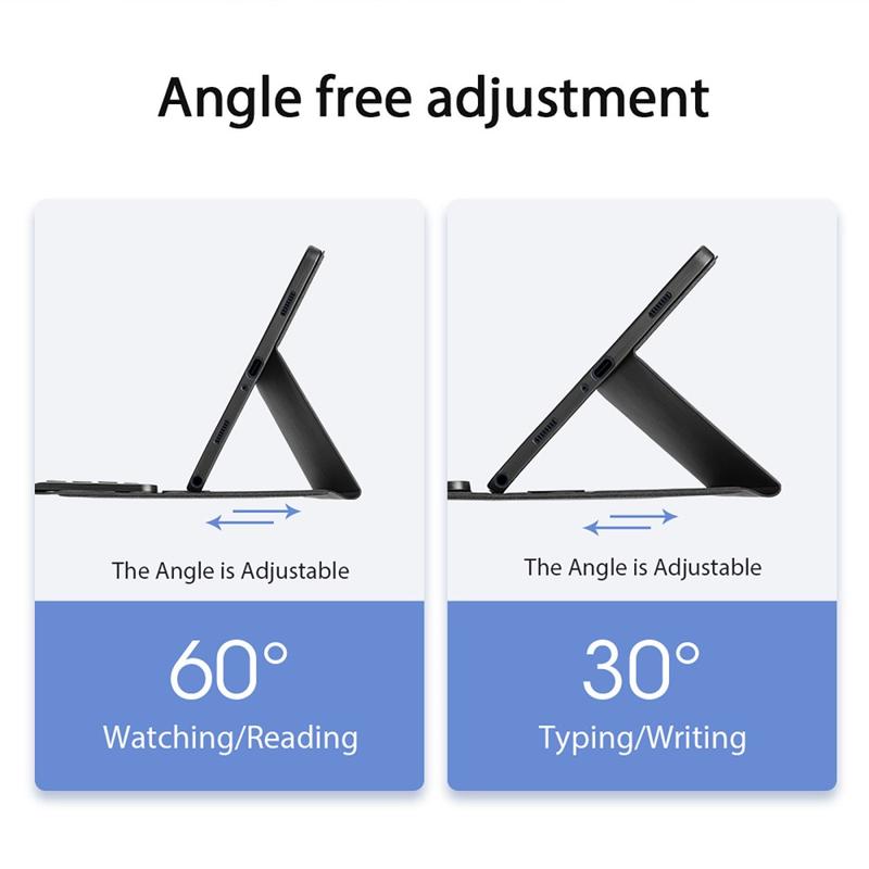 Dank des schlanken und leichten Designs können Sie diese fantastische Bluetooth-Tastaturhülle von Dux Ducis für das Samsung Galaxy Tab A9+ überall hin mitnehmen. 2-in-1, Bluetooth-Tastatur und eine Tablet-Hülle. Die Tastatur ist mit einem Doppelmagneten befestigt, sehr stabil und lässt sich nicht schnell bewegen. Außerdem verfügt es über ein Touchpad mit einstellbarer Empfindlichkeit und einer langlebigen Taste. Genießen Sie das freihändige Erlebnis, indem Sie eine Hülle in mehreren Winkeln als Stützständer verwenden.