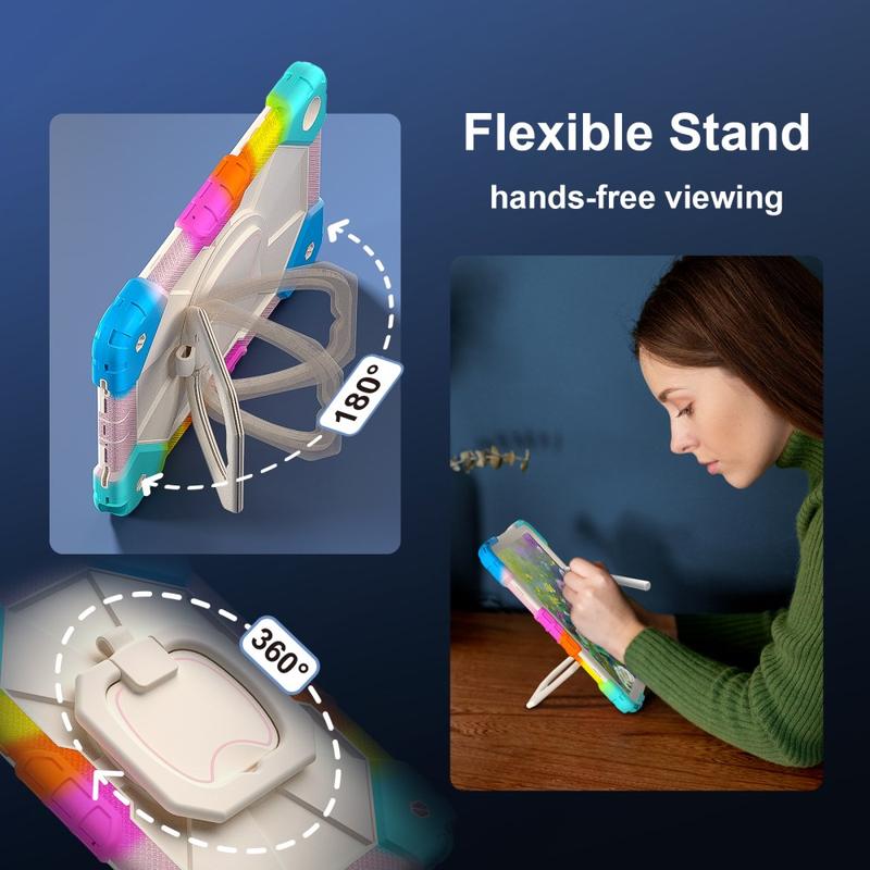 - Verstärkte Ecken, rutschfestes Innenfutter und drehbarer 360-Grad-Kickstand