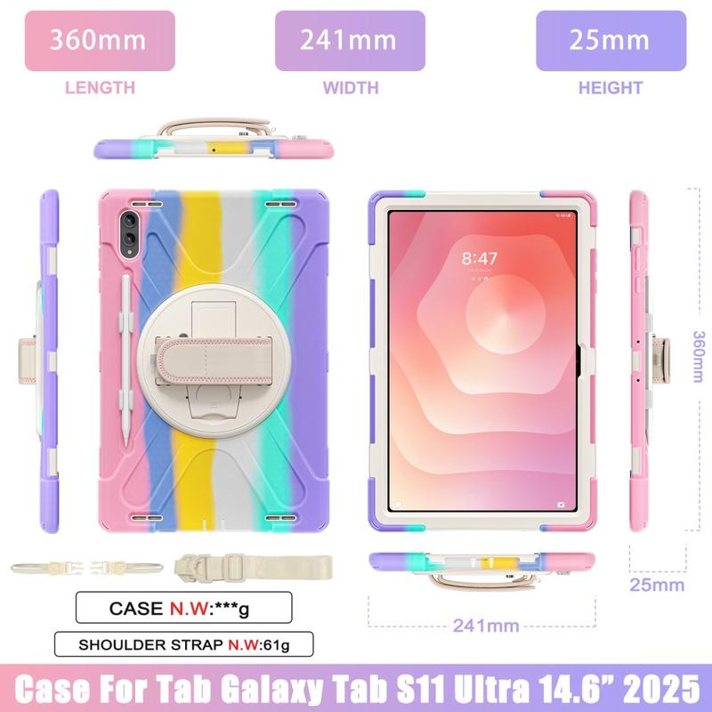 • Strapazierfähiges 360° Drehbare Hülle mit Hand- und Schulterriemen für Samsung Galaxy Tab S11 Ultra