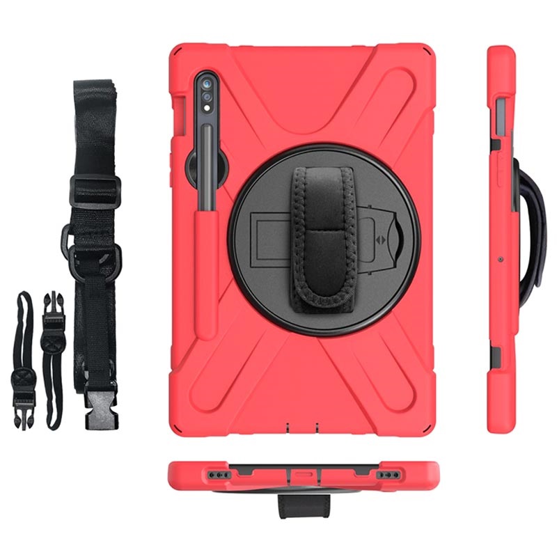 Strapazierfähiges 360° Drehbare Hülle mit Hand- und Schulterriemen für Samsung Galaxy Tab S7, Galaxy Tab S8
