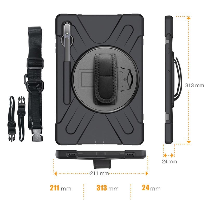 Heavy Duty 360-Grad-Hülle mit Hand & Schultergurt für Samsung Galaxy Tab S7 Plus, Galaxy Tab S8 Plus