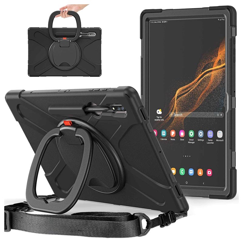 Hybrid-Hülle mit Rotierend Kickstand und Schultergurt für Samsung Galaxy Tab S8 Ultra