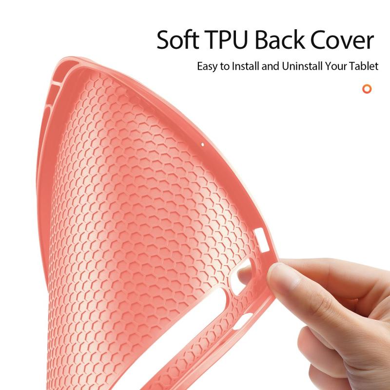 Dieses Zubehör schützt das Gerät vor Dellen und Kratzern und erweitert seine Funktionalität. Die Frontklappe dient gleichzeitig als Ständer mit drei Modi für einfaches Tippen und freihändiges Anschauen von Videos.