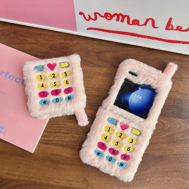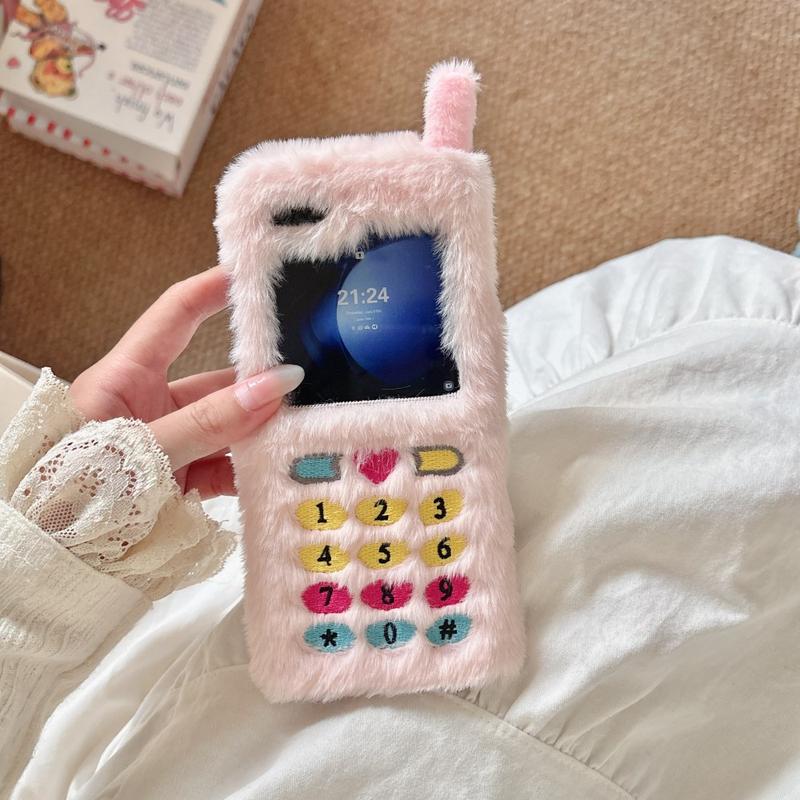 • Retro-Plüsch-Hülle für Samsung Galaxy Z Flip6, Galaxy Z Flip7 FE mit gestickten Zifferntasten