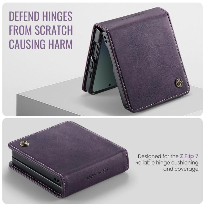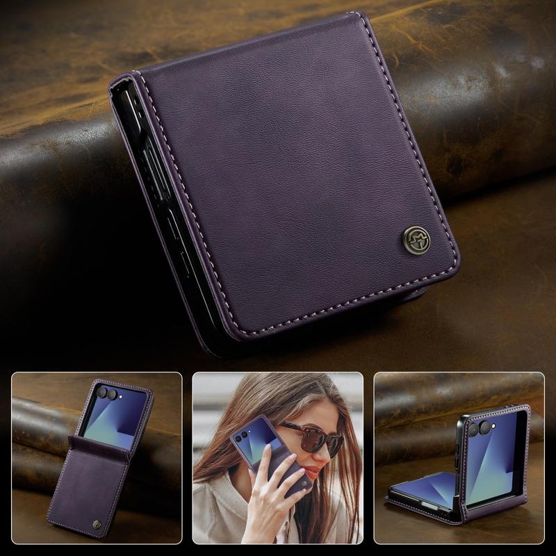 Samsung Galaxy Z Flip7 Caseme 033 Kalb Textur Brieftasche Hülle mit RFID-Blockierung - lila