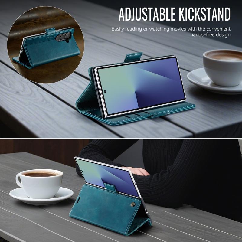 Das CASEME 033 Series Wallet Case für das Samsung Galaxy Z Fold7 ist aus Polyurethan mit Kalbslederstruktur und TPU gefertigt. Es bietet Schutz vor Kratzern, Stößen und täglicher Beanspruchung und sieht dabei elegant und hochwertig aus.