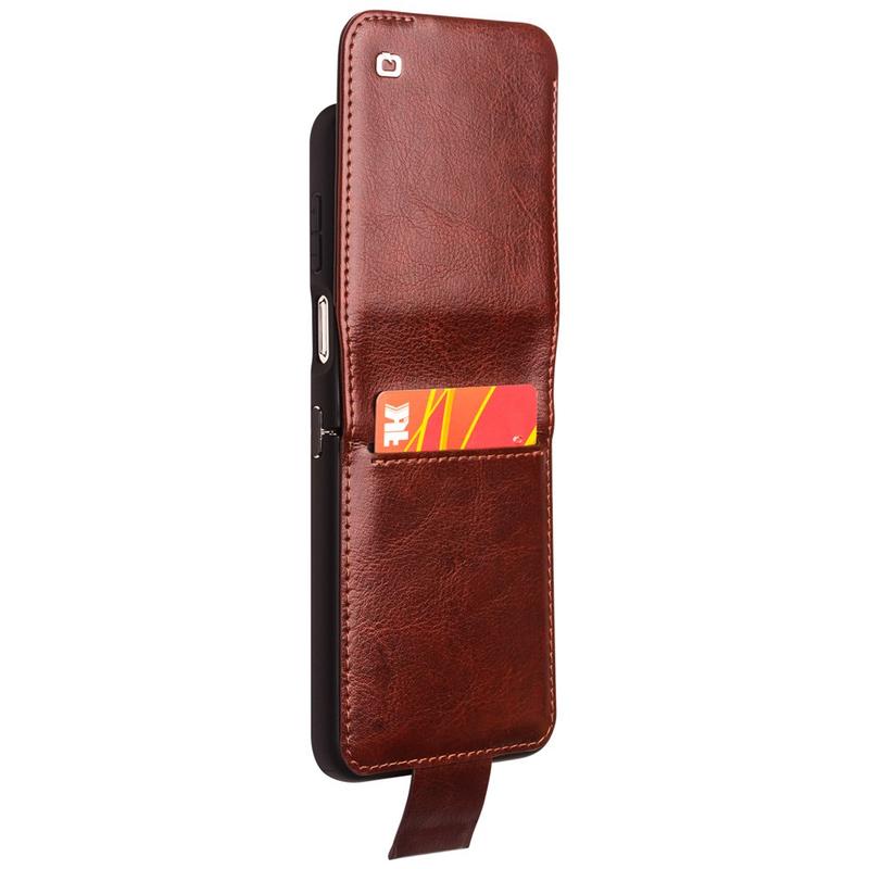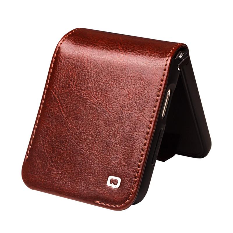 Samsung Galaxy Z Flip5 Qialino Classic Lederhülle mit Geldbörse - Dunkelbraun