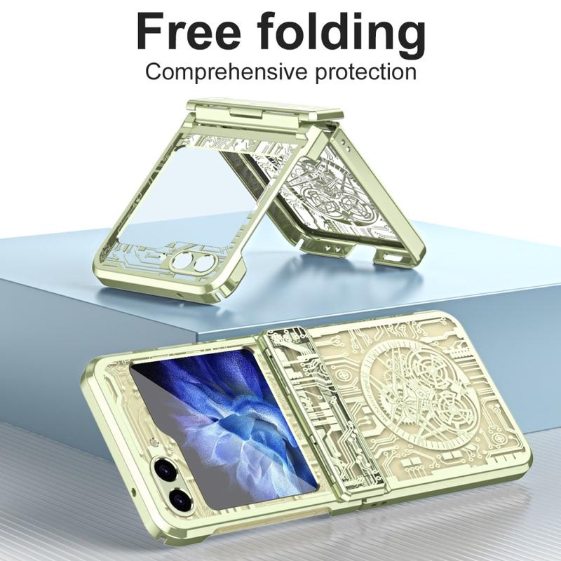 Das Mechanical Legend Series Case für Samsung Galaxy Z Flip6, Galaxy Z Flip7 FE kombiniert hervorragenden Schutz mit elegantem Design. Diese galvanisierte PC-Telefonhülle mit Bildschirmfolie bietet einen umfassenden Schutz vor Kratzern, Stürzen und täglicher Abnutzung. Das stilvolle Finish verleiht Ihrem Gerät einen Hauch von Eleganz und macht es sowohl funktional als auch modisch.