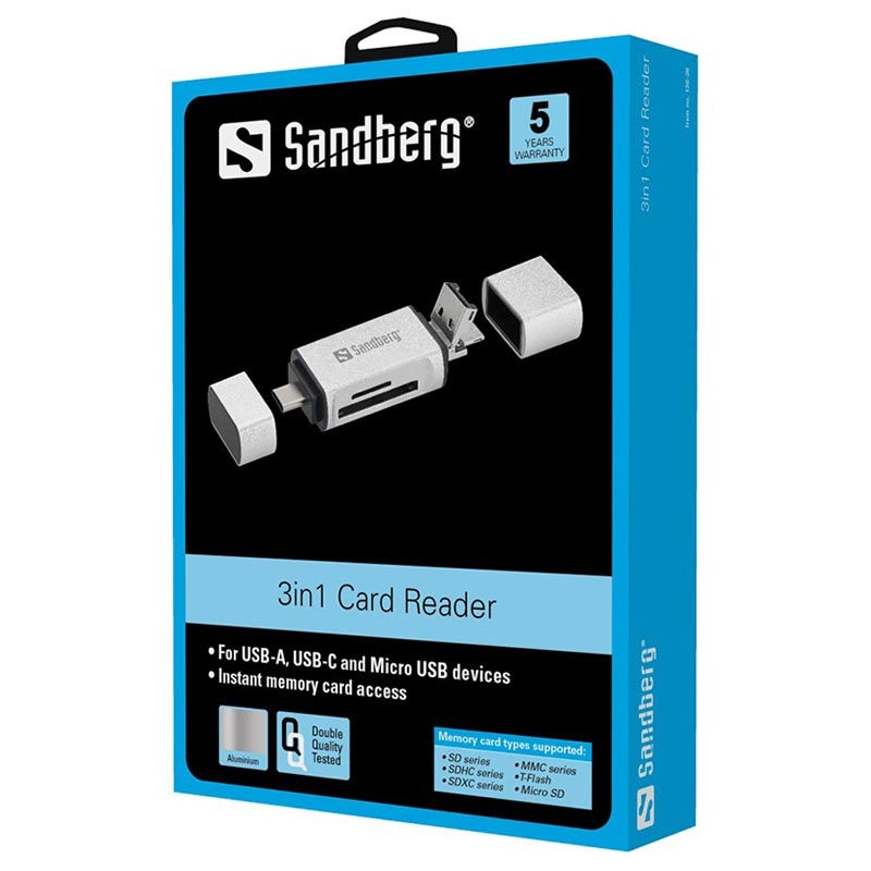 - Tragbarer 3-in-1-Kartenleser von Sandberg