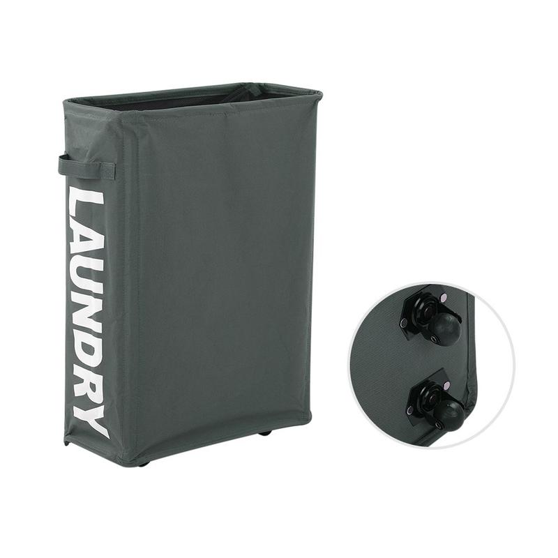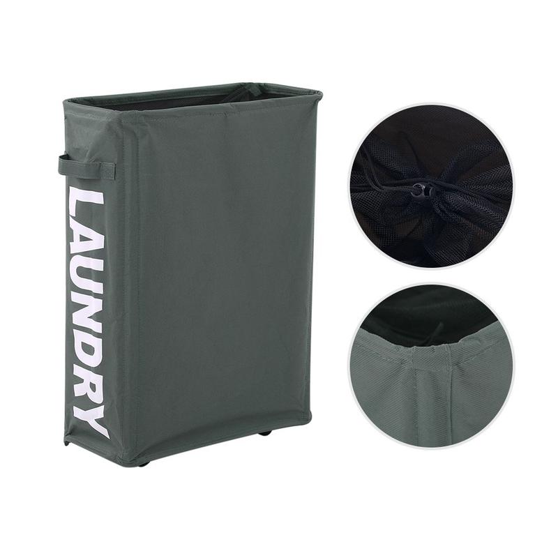 Schlanker, faltbarer Oxford-Wäschekorb mit Rädern und Mesh-Deckel mit Kordelzug - Eck-Wäschekorb für schmutzige Wäsche
