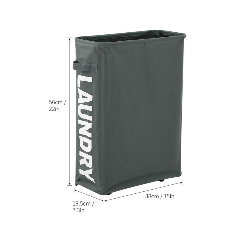 Dieser schlanke, eckenfreundliche Wäschekorb passt problemlos zwischen Waschmaschine und Trockner, neben Schränke oder in enge Räume. Er bietet reichlich Stauraum für schmutzige Wäsche, ohne unnötig Platz zu beanspruchen.