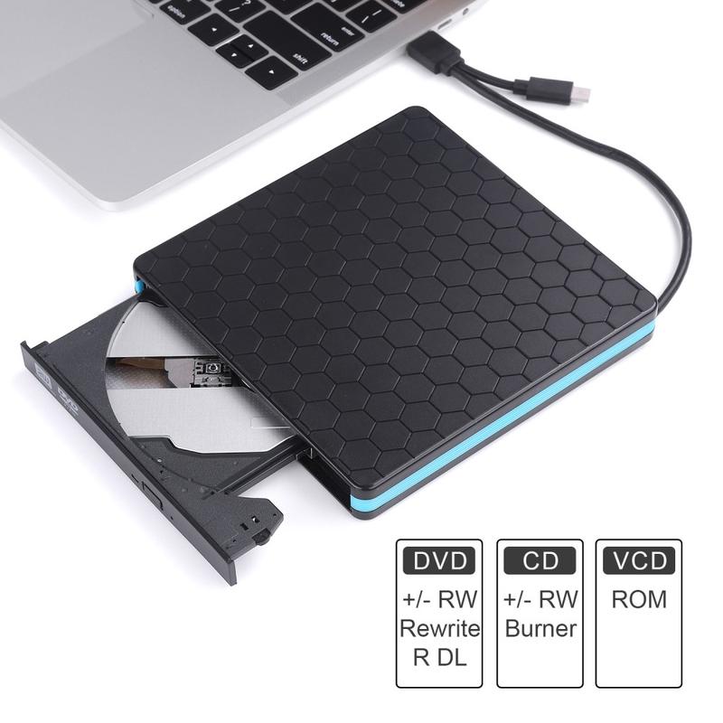 • Schlankes externes DVD-Laufwerk - Rewriter, Brenner, Leser - USB-C / USB-A