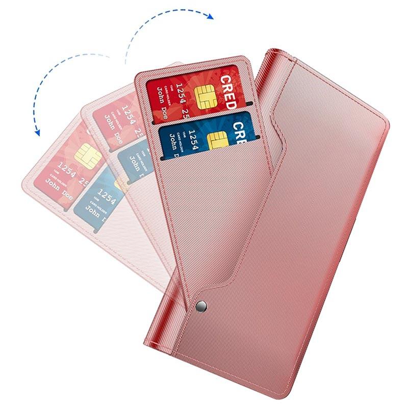 Dieses super elegante Flip Case schützt Ihr OnePlus 10 Pro vor ungewollten Beschädigungen. Diese Hülle verbirgt drehbare Kartenfächer in der Frontabdeckung, die praktisch ist, um Ihren Ausweis oder Ihre Kreditkarte sicher aufzubewahren. Im Inneren befindet sich derweil ein Fotoschlitz sowie ein kleiner Spiegel, damit Sie Ihr Aussehen jederzeit überprüfen können. Das weiche Polyurethan auf der Außenseite, die flexible TPU-Innenschale und der doppelseitige Magnetverschluss sorgen für einen hervorragenden Rundumschutz für Ihr OnePlus 10 Pro.