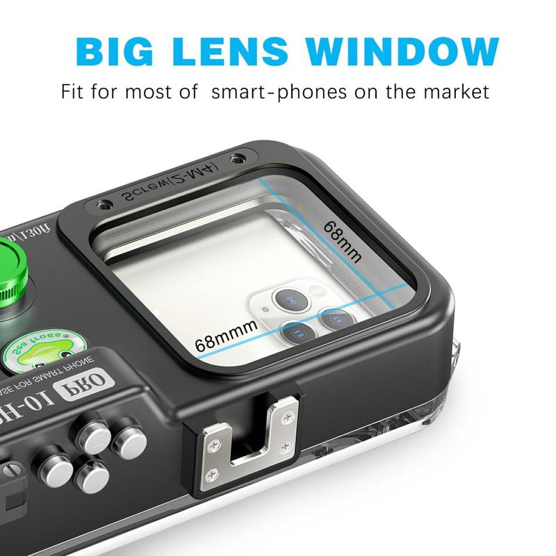 Nehmen Sie Ihr Smartphone 40m unter die Wasseroberfläche und fangen Sie lebendige, verzerrungsfreie Erinnerungen ein. Das Sea Frogs SF-PH-01-PRO bietet 360°-Rundumschutz dank eines robusten PC-Gehäuses, Edelstahl-Hardware und einer O-Ring-Pressdichtung, die Wasser, Sand und Staub abhält. Ein großes 67-mm-Objektivfenster, eine kratzfeste HD-Rückseite und Schnellmontagepunkte für Aufhelllichter oder Lampenarme verwandeln Ihr Alltagshandy in eine Action-Kamera auf Profi-Niveau.