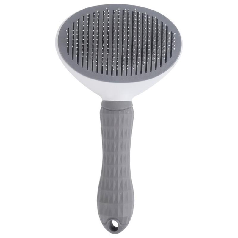 Selbstreinigende Pflegebürste für Haustiere - Haarentfernung und Massagekamm für Hunde und Katzen - Grau