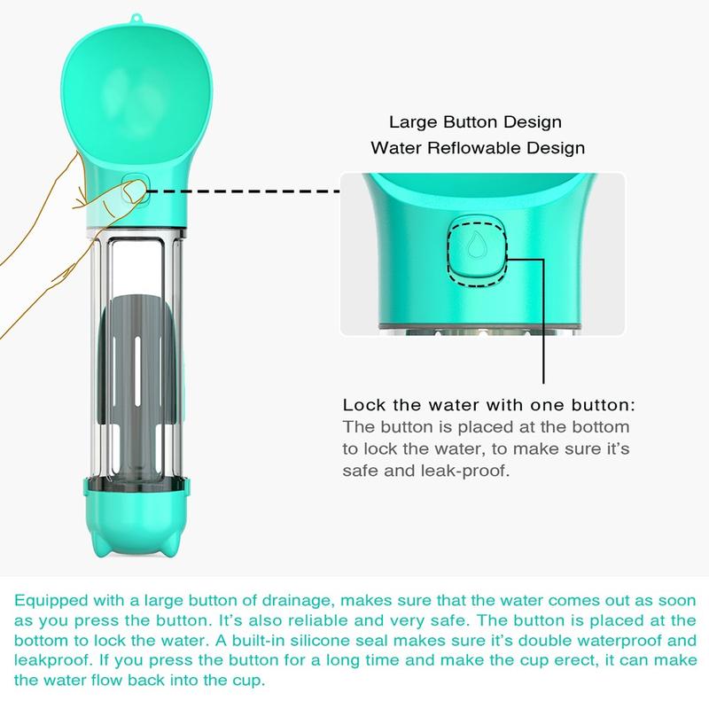 • SH-01 Tragbare Multifunktions-Hundewasserflasche mit Kotbeutelspender - 500ml, BPA-frei