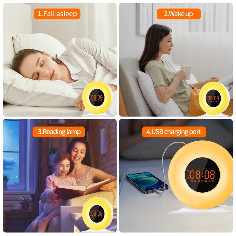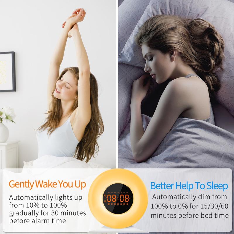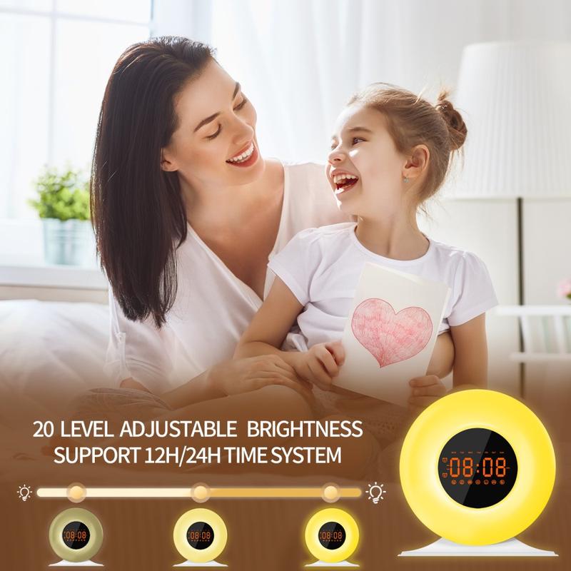 • SH05 Sonnenaufgang-Wecker mit weißem Rauschen und Nachtlicht - FM-Radio, Sleep-Timer