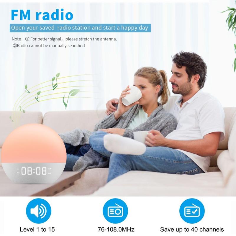 • SH08 Nachttischwecker mit LED-Licht, stimmungsvollen Farben, weißem Rauschen und FM-Radio