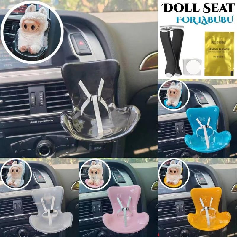 • Labubu Mini-Sicherheitsautositz - Clip-On-Autolüftungshalterung für 17cm Plüschfiguren, integrierter Sicherheitsgurt, Innenraumdekoration