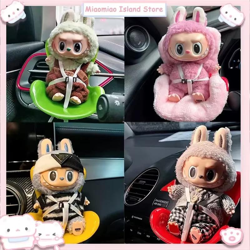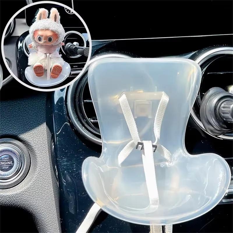 Labubu Mini-Sicherheitsautositz - Clip-On-Autolüftungshalterung für 17cm Plüschfiguren, integrierter Sicherheitsgurt, Innenraumdekoration