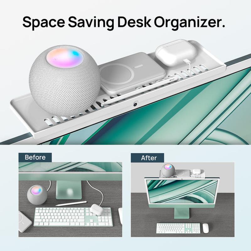 - Kompaktes Design: Spart Platz auf dem Schreibtisch durch Hinzufügen einer zusätzlichen Ablagefläche.