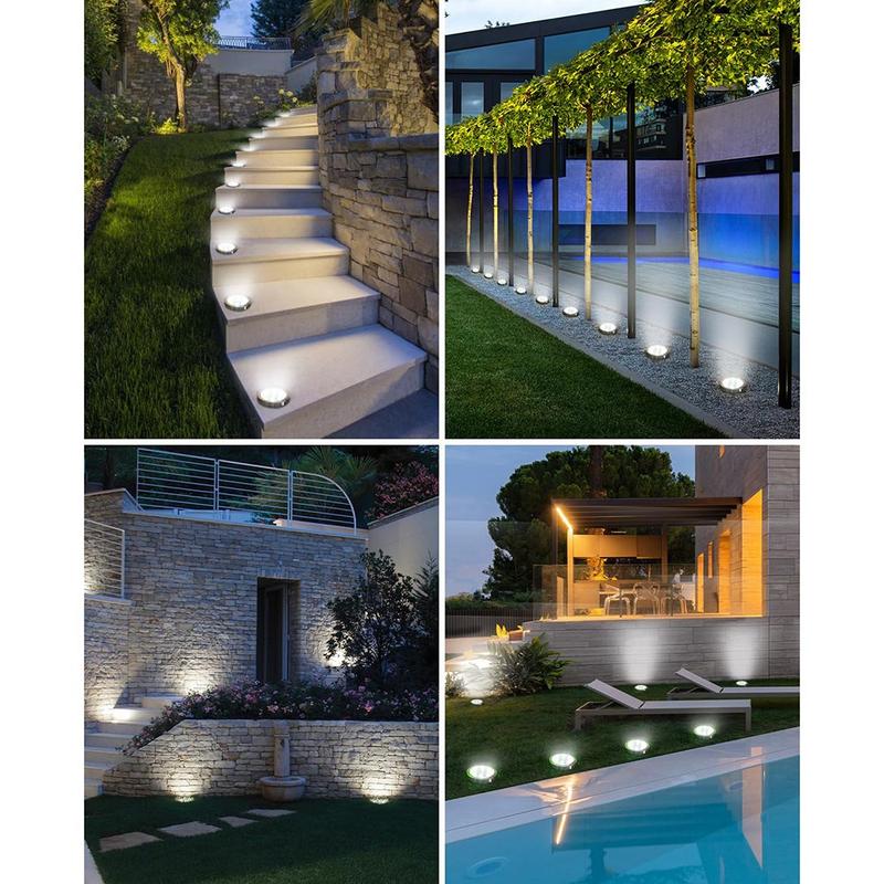 - Acht helle LEDs pro Scheibe - breiter, gleichmäßiger 360°-Halo hilft, Stolperfallen zu vermeiden und hebt Gartenmerkmale hervor.