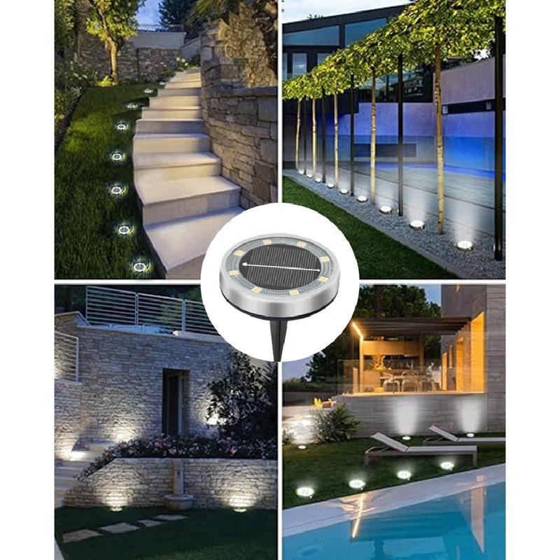 Solar-Bodenleuchten - 8-LED-Edelstahl-Rasenpfähle, IP65 Wasserdicht, Auto On/Off