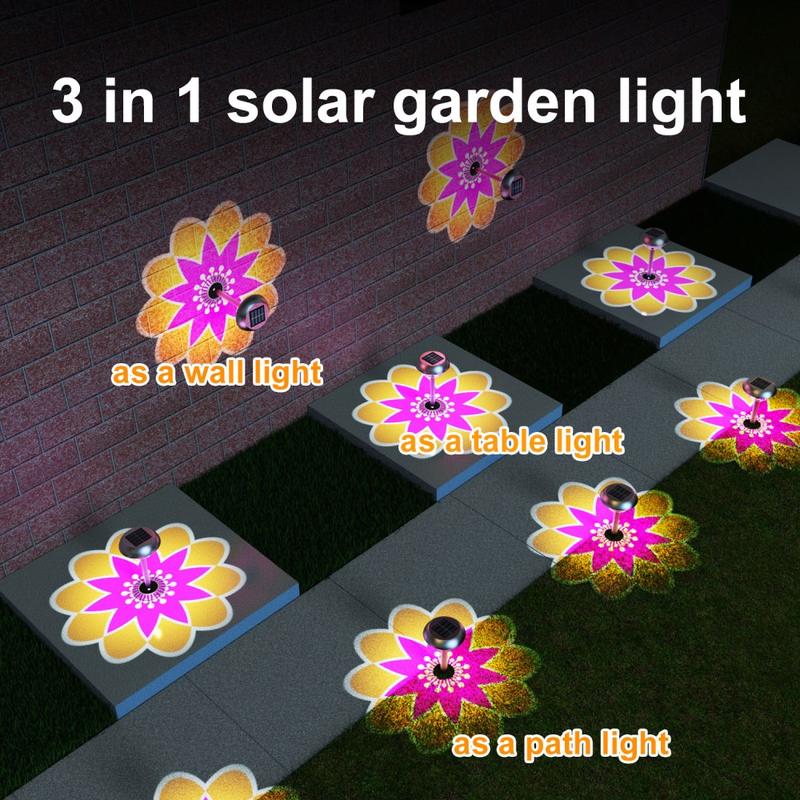 Solar-Sonnenblumen-Projektionsleuchte F10 - Edelstahl 0,2W Lampe, 7-Farben-Muster, IPX wasserdicht für Garten & Terrasse