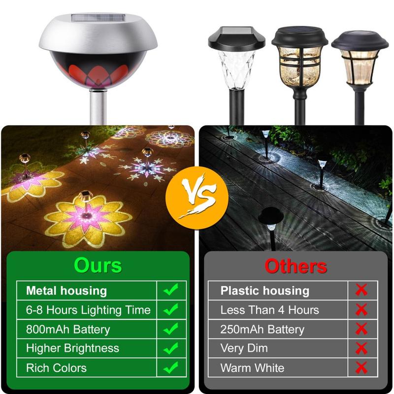 - Intelligente Solarsteuerung - integriertes 2 V / 120 mA-Panel und 800 mAh Ni-MH-Zelle sorgen für bis zu 10 Stunden Leuchtdauer nach einer 6-8-stündigen Aufladung.