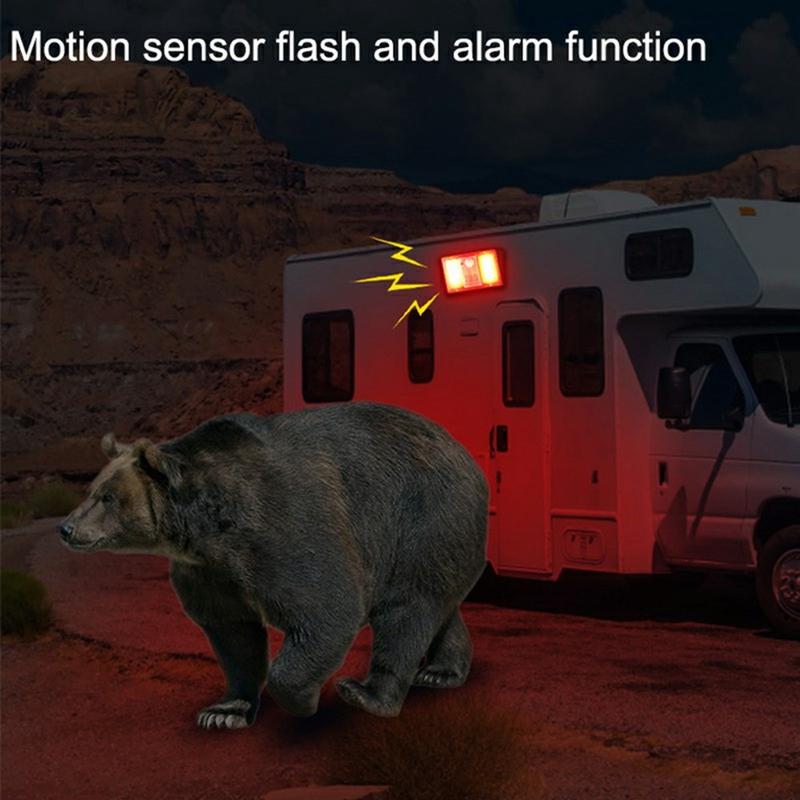 - Sofortige Abschreckung: Lauter 129-dB-Alarm und blinkende rote LEDs erregen Aufmerksamkeit und schrecken Diebe oder Wildtiere ab.