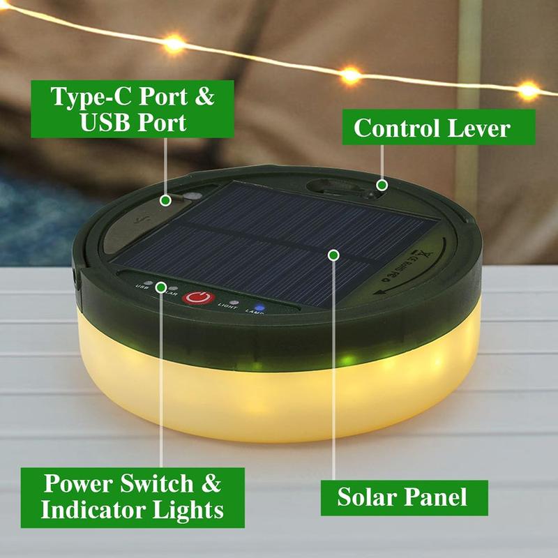 - Zelte, Wohnmobile oder Festivalplätze in ein gemütliches Licht tauchen - und über Nacht ein Handy aufladen.