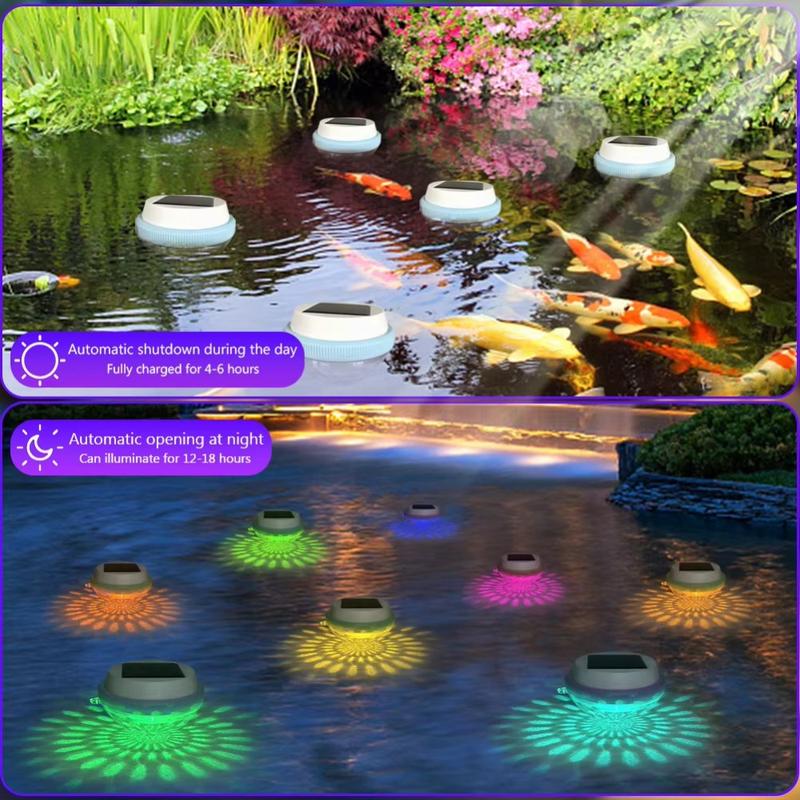 • Solarbetriebene schwimmende Poolbeleuchtung mit farbwechselnden LEDs