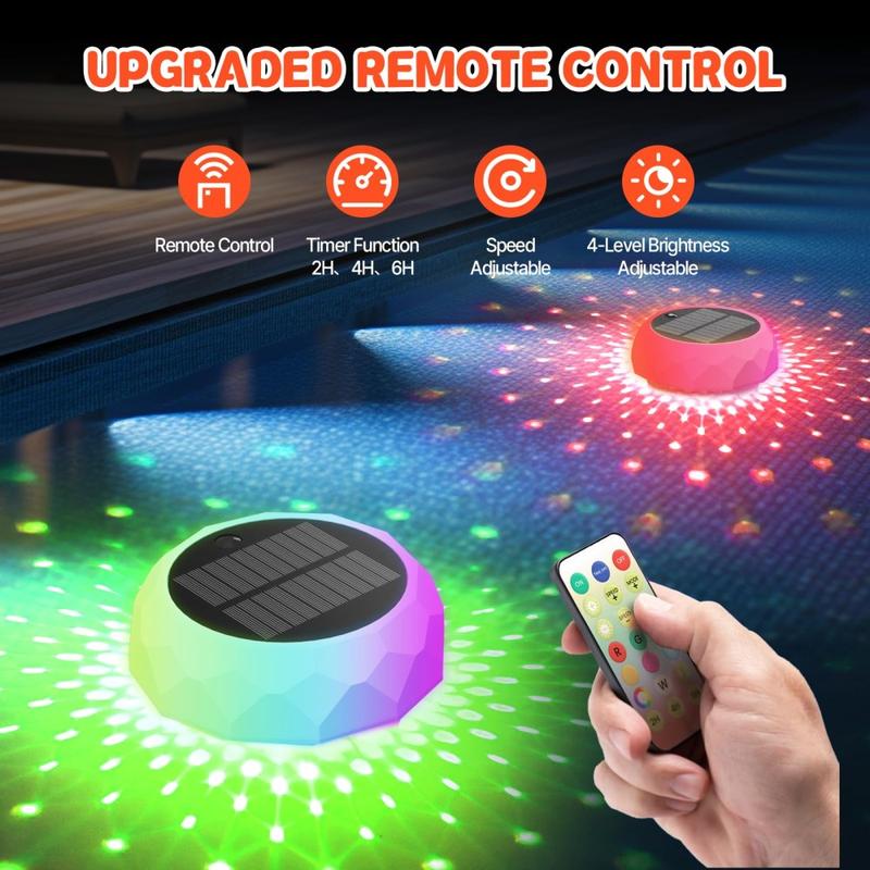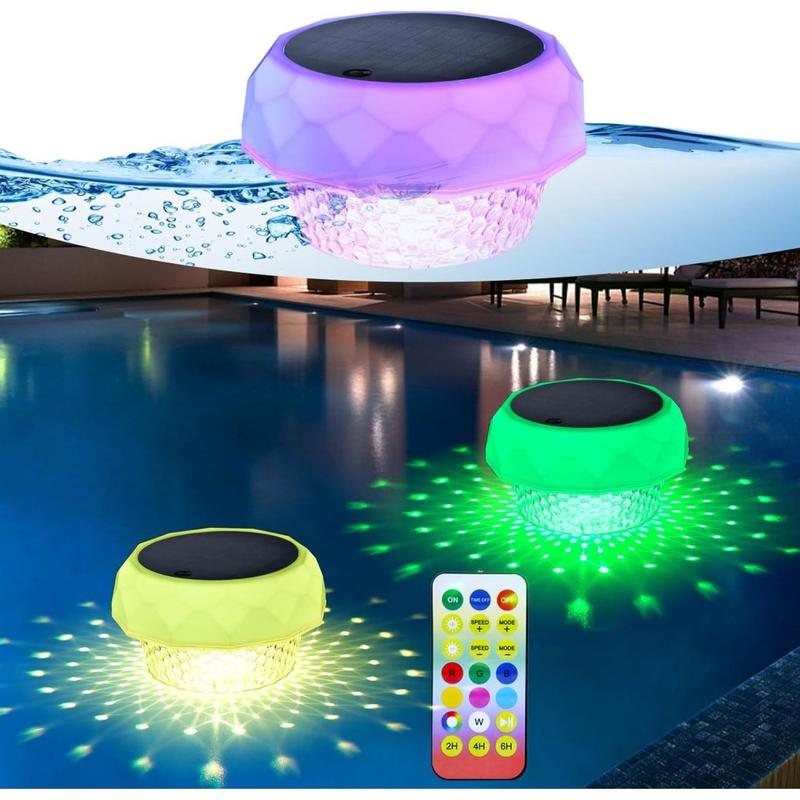 Solarbetriebene Pool-Schwimmleuchte mit Desinfektionsbox und RGB-LEDs - Ferngesteuerte Timer-Lampe, 170 × 100 mm IPX7