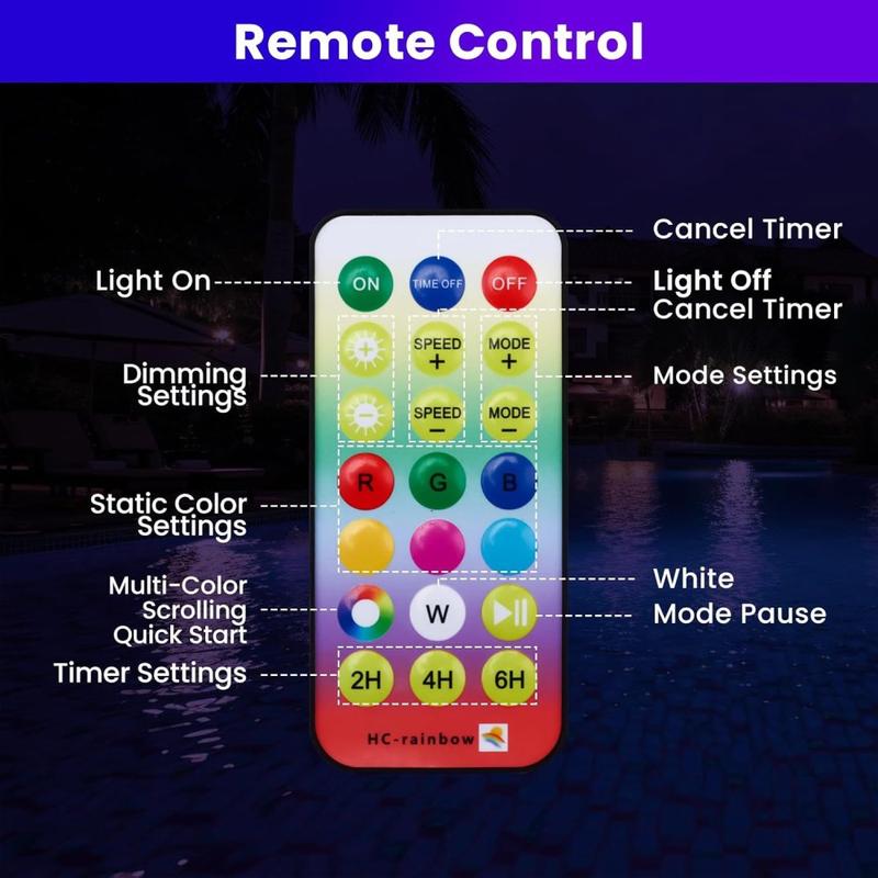 - Mit der Fernbedienung können Sie die Farbe ändern oder das Gerät abschalten, ohne das Wasser zu betreten