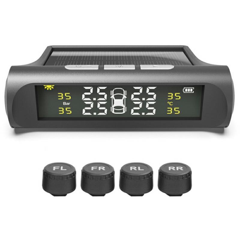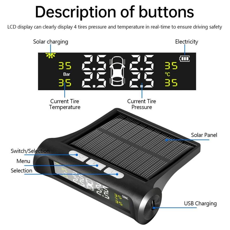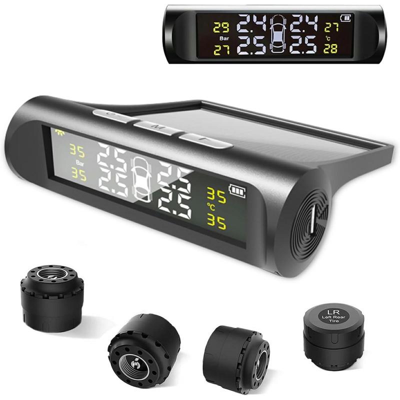 • Solarbetriebenes drahtloses Reifendrucküberwachungssystem mit LCD-Display und 4 externen Sensoren