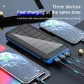 Mit diesem tragbaren Solarstrom-Ladegerät mit 20000mAh haben Sie auch unterwegs immer Strom. Ausgestattet mit drei USB-Anschlüssen und zwei LED-Leuchten, unterstützt diese Powerbank das gleichzeitige Aufladen mehrerer Geräte. Sie verfügt außerdem über eine kabellose Ladefunktion, die zusätzlichen Komfort für kompatible Geräte bietet. Die Solarladefunktion sorgt dafür, dass Sie in jeder Situation über Strom verfügen, was sie ideal für Outdoor-Abenteuer, Reisen oder Notfälle macht. Das robuste Design und die große Kapazität machen sie zu einem zuverlässigen Begleiter, der Ihre Geräte immer und überall auflädt.