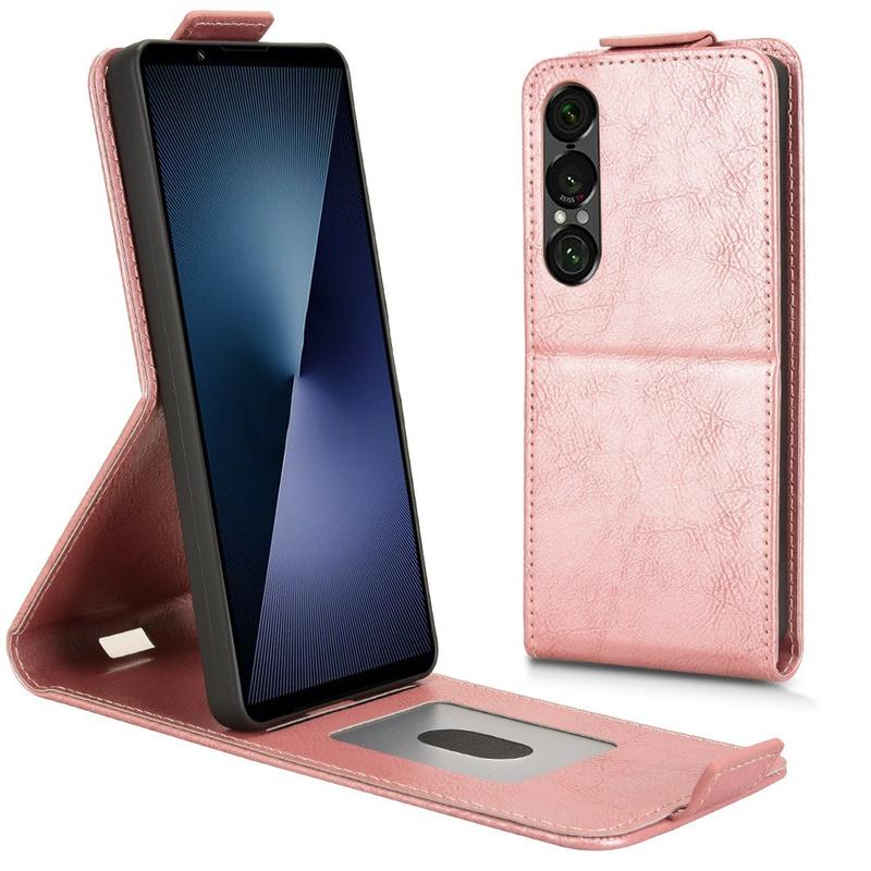 Sony Xperia 1 VII Vertikal Flip Hülle mit Ständer - Roségold