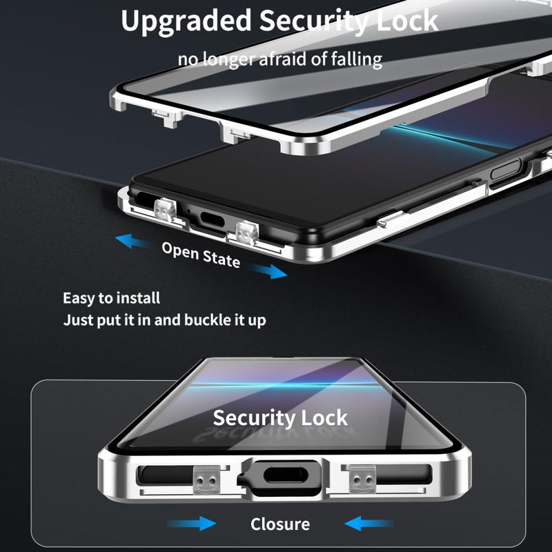 • Magnetische Hülle mit gehärtetem Glas vorne und PC hinten für Sony Xperia 1 VII