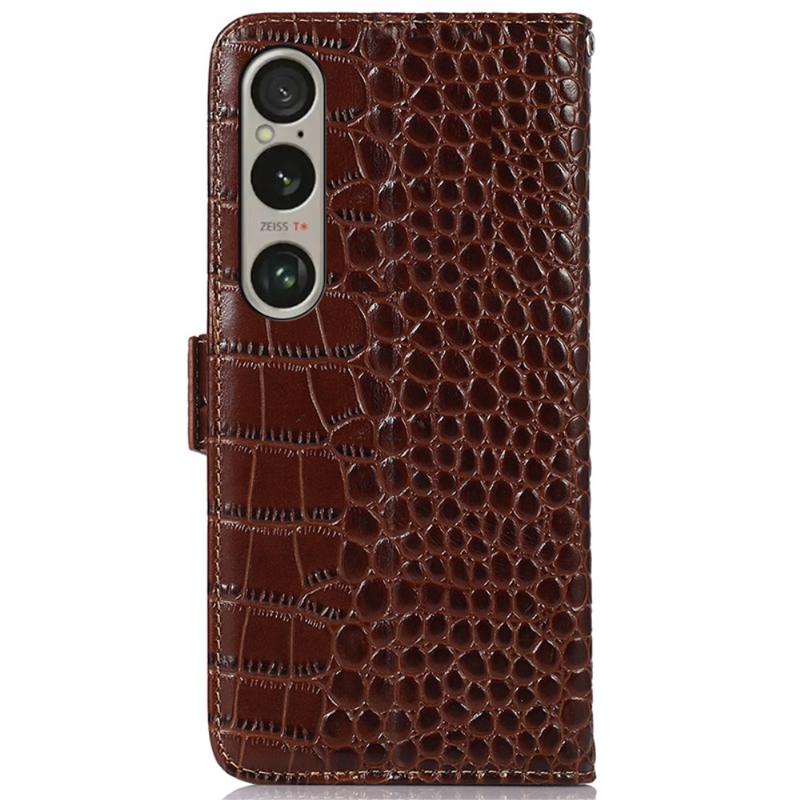 Crocodile Serie Lederhülle mit Geldbörse mit RFID für Sony Xperia 1 VI