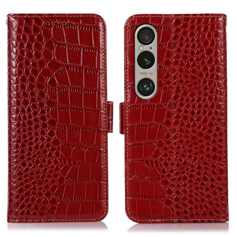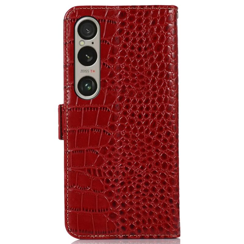 Sony Xperia 1 VI Crocodile Serie Lederhülle mit Geldbörse mit RFID - Rot