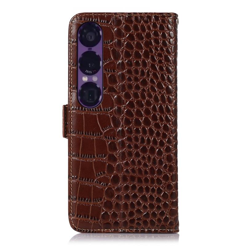 Sony Xperia 1 VII Crocodile Serie Lederhülle mit Geldbörse mit RFID - Braun