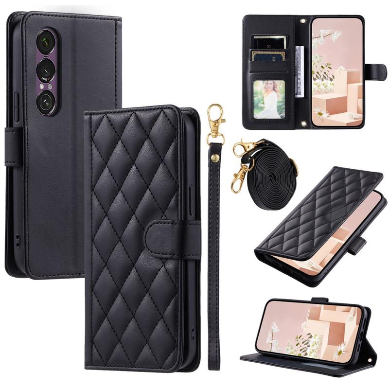 Sony Xperia 1 VII Luxus Gesteppte Wallet Hülle - Schwarz