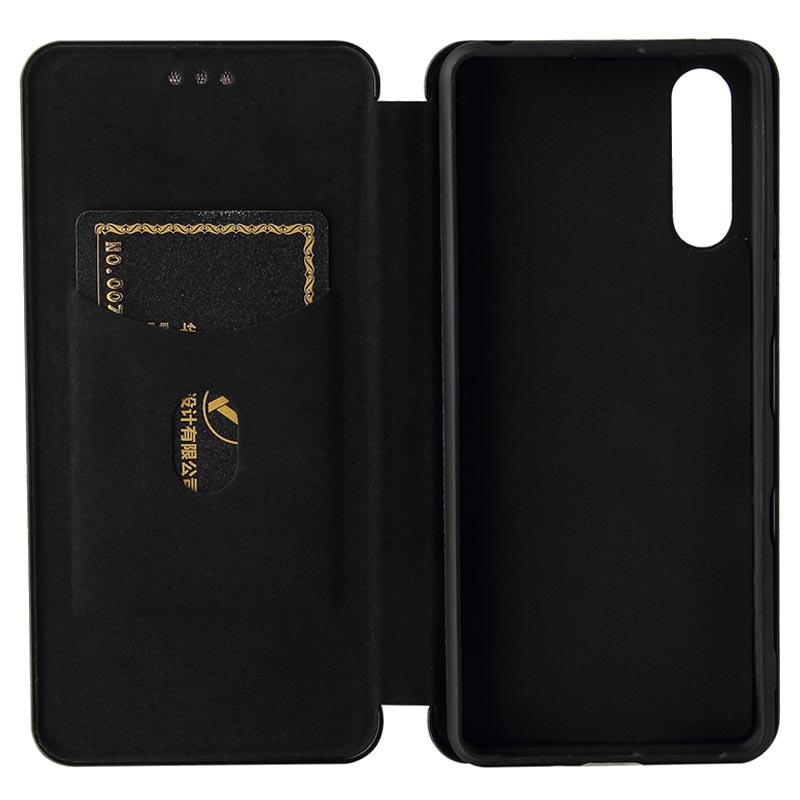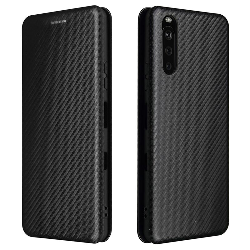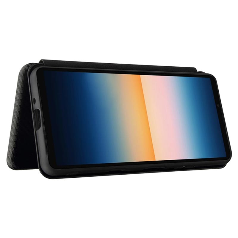 Bewahren Sie Ihr Sony Xperia 10 III, Xperia 10 III Lite in diesem Flip-Case mit Kohlefaser-Textur auf Nummer sicher auf.