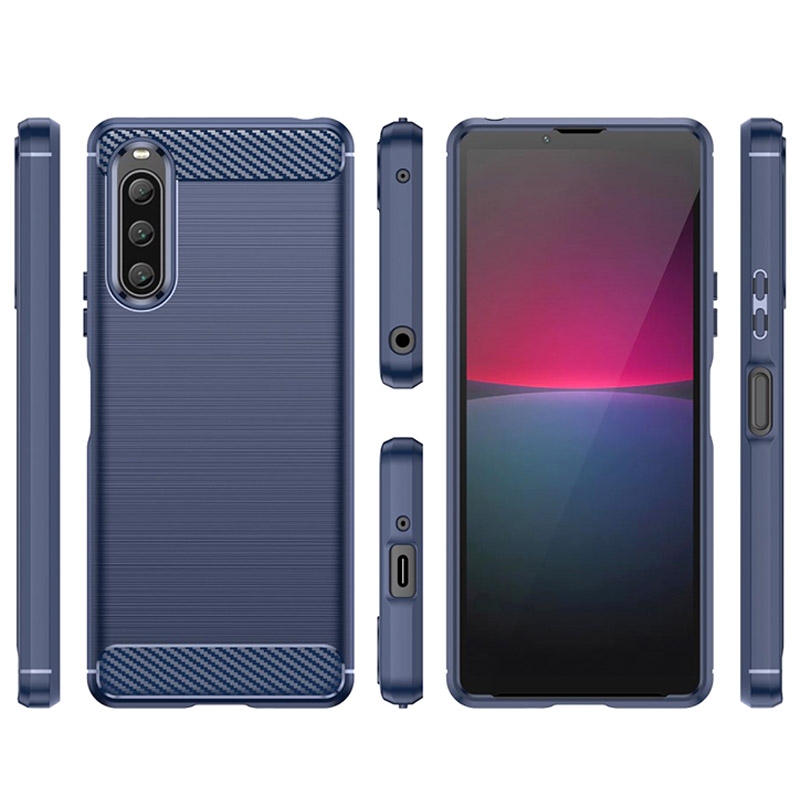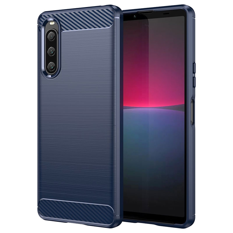 Sony Xperia 10 V Angeraute TPU Hülle - Karbonfaser - Blau