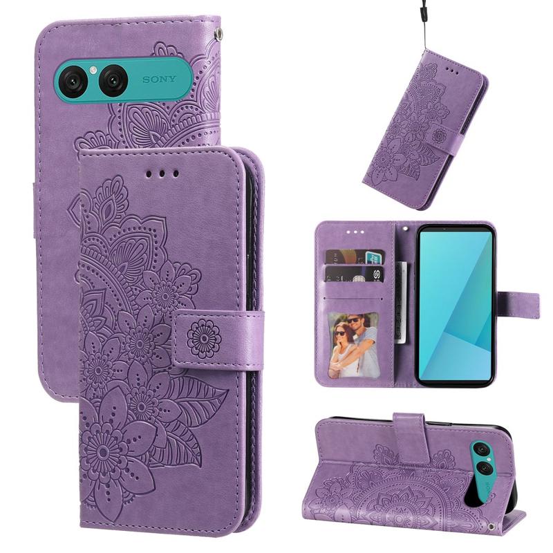 Sony Xperia 10 VII Mandala Serie Wallet Hülle - Purpur