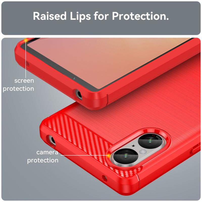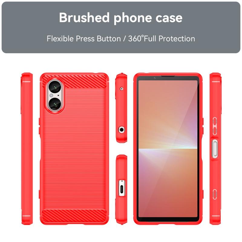 Sony Xperia 5 V Gebürstete TPU Hülle - Karbonfaser - Rot