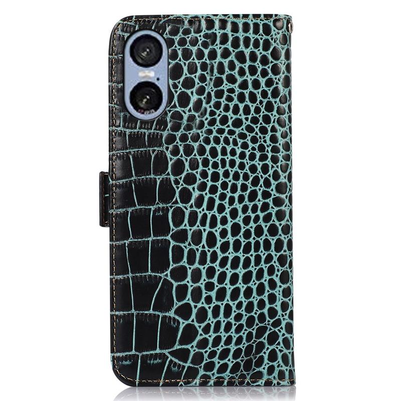 Sony Xperia 5 VI Crocodile Serie Lederhülle mit Geldbörse mit RFID - Grün