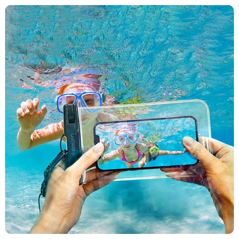 Der Sommer ist da, um zu genießen und zu entspannen - packen Sie eine Sonnencreme ein, ziehen Sie Ihren Badeanzug an, stecken Sie Ihr Smartphone in das wasserdichte Etui A601 von Spigen, und Sie sind bereit, unvergessliche Fotos auf Ihren Sommerausflügen zu machen. Dieses hochwertige, wasserdichte Gehäuse besteht aus langlebigen, IPX8-zertifizierten Materialien für den vollständigen Schutz Ihres Smartphones vor dem Eindringen von Wasser, ohne die Touchscreen-Funktionalität zu beeinträchtigen. Daher ist es ein unverzichtbares Zubehör, wenn Sie schwimmen, Boot fahren oder tauchen gehen.