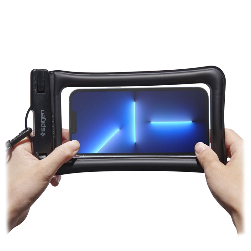 Die Spigen A610 Universal-Schwimmhülle ist ein unverzichtbares Accessoire für Wasseraktivitäten. Dank der Wasserdichtigkeitsklasse IPX8 können Sie Ihr Smartphone bis zu einer Tiefe von 30 Metern unter Wasser verwenden. Eine Lufttasche im Inneren der Hülle hält Ihr Handy an der Wasseroberfläche; wenn Sie es verlieren, können Sie es leicht wiederfinden. Das transparente Design auf beiden Seiten ermöglicht es Ihnen, Fotos zu machen und den Touchscreen zu bedienen.