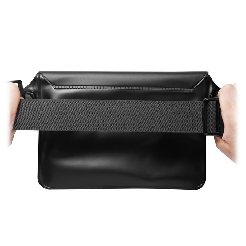 Das sichere Verschlusssystem und das kratzfeste Material sorgen dafür, dass Ihr Telefon und andere Gegenstände bis zu dreißig Meter unter Wasser vor Wasserschäden geschützt sind. Darüber hinaus sorgt der verstellbare elastische Gurt für einen festen und dennoch bequemen Sitz, egal ob Sie die Tasche um die Hüfte oder quer über den Körper tragen.
